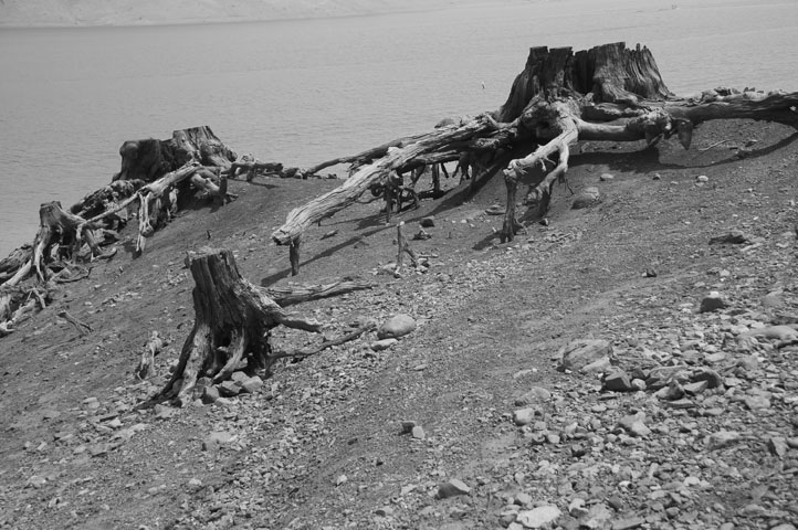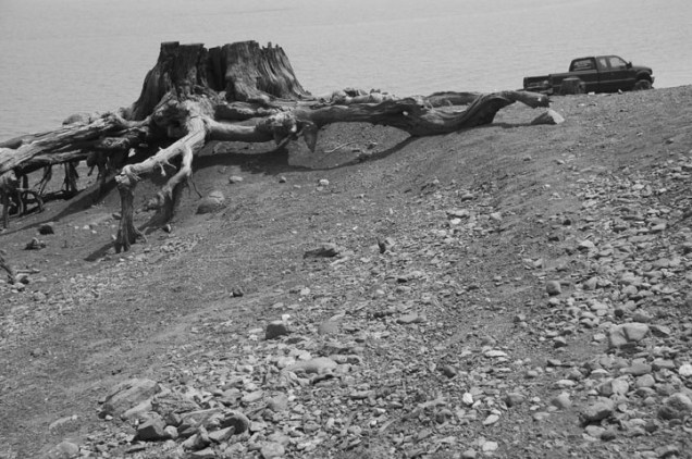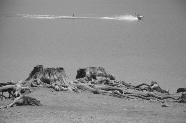 Mấy tấm hình này chụp từ năm 2008, lúc ấy con bé lớn, Yi Yi, được sáu tháng tuổi. Tôi chở hai mẹ con vào rừng, lên hồ Shasta (California) cắm trại. Hồ Shasta lúc ấy vừa trải qua một trận cháy rừng lớn, cả một vùng mùi khen khét, khói vẫn lám xám lờ nhờ suốt cả chục dặm liền. Tôi chẳng biết mình chui lên đấy làm gì, nhưng nó gần như là thông lệ. Dạo ấy mỗi năm tôi lại đưa gia đình đi cắm trại vài lần ở nhiều nơi khác nhau. Chỉ mấy tháng sau lần đi ấy, mua nhà ở bìa rừng trên núi, chúng tôi mới ít đi dần. Lần ấy, hôm đầu tôi chỉ ở quanh trại nướng thịt, uống bia rồi chui vào lều nhìn con bé con. Hôm sau tôi vác máy ra hồ, chẳng có ai ngoài ấy, chỉ có một hai cái thuyền máy, như thấy ở trong hình.