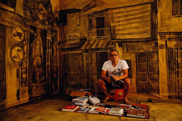 Khai triển từ tính chất “tạm thời ” đó, tôi đã vẽ lại khu ổ chuột bằng than trên giấy, rồi sắp đặt trong góc tường studio như một hình ảnh tái hiện, sau đó tôi mời chính những người dân sinh sống nơi đây đứng trước phông nền vẽ khu nhà của họ để chụp hình. Không được nói cho biết trước sẽ làm gì, những người này đã tỏ ra ngạc nhiên một cách thích thú khi thấy góc phố thân thuộc của mình, và chỉ sau vài phút ngỡ ngàng, họ đã cho những pose hình tự nhiên một cách xuất sắc, vì đó là nơi họ thuộc về.