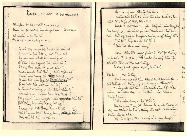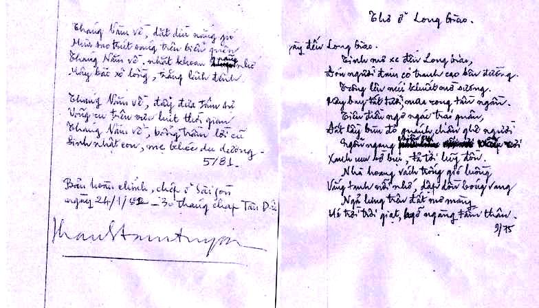 Sau nhiều trang viết đi viết lại một bài thơ, ở trang cuối cùng của bản nháp là đoạn thơ sau đây: