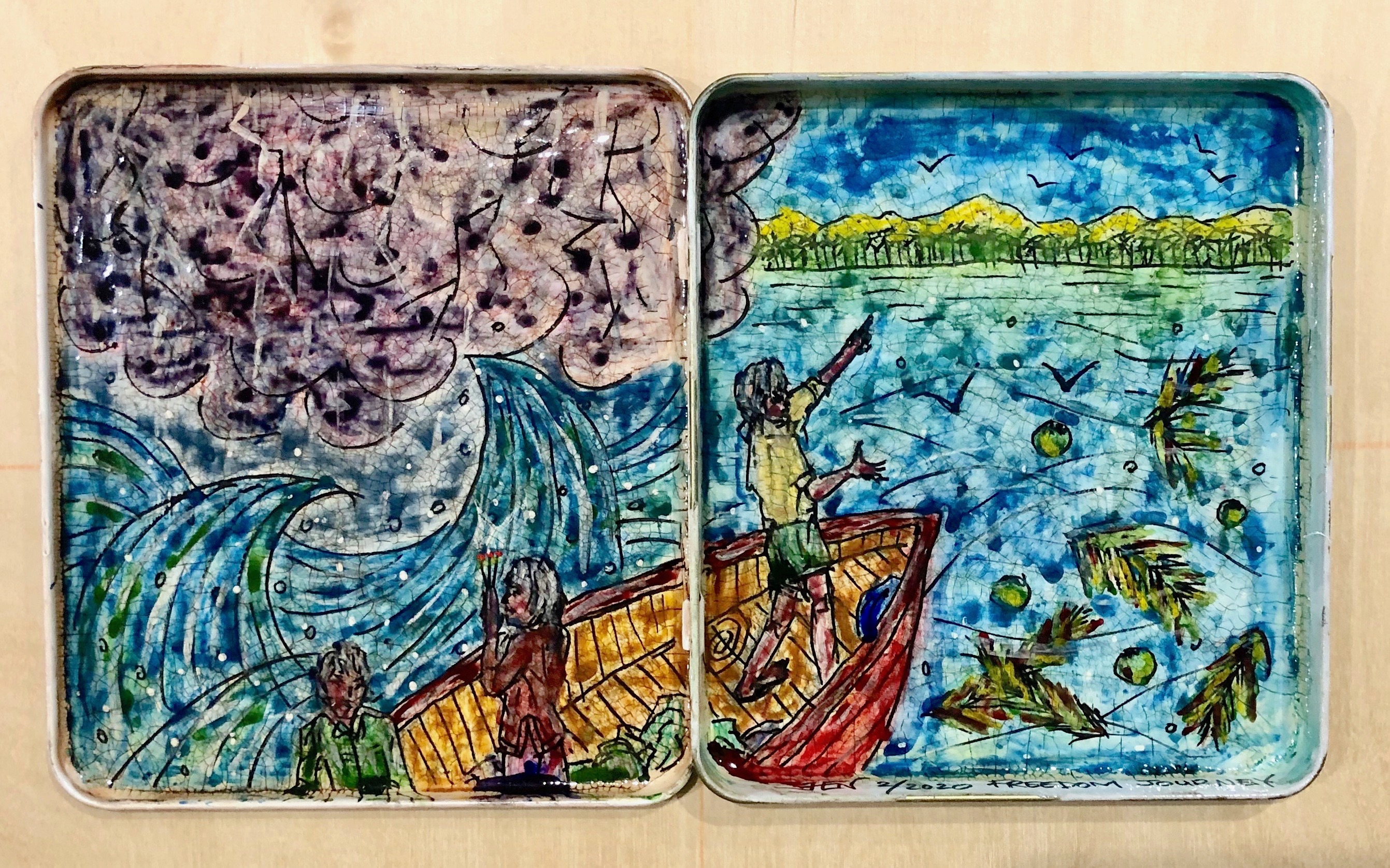 Loạt tranh sau đây bao gồm năm tác phẩm khổ nhỏ, vẽ trên hộp thuốc xì gà làm bằng thiết. Những bức tranh này có chức năng như loại tranh đôi (diptych), khi mở ra mô tả hai tình huống, hai nhân vật, khi đóng lại thì các tình huống và nhân vật này nhập vào nhau, như cân bằng, như xoa dịu, và không còn xa cách.