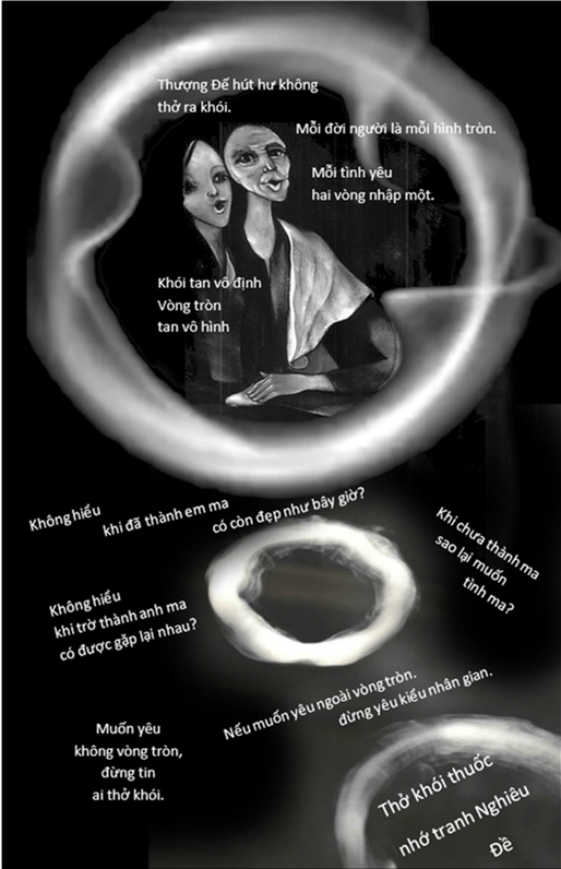 Ánh sáng len lỏi trên đỉnh cây xuống dần mặt nước. Cắt nửa thân hình vượn, tô màu dĩ vãng. Nửa còn lại như tượng vệ nữ khỏa thân khom lưng trong điện Louvre.