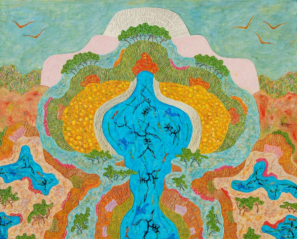 Nguyễn Việt Hùng, “Linh Cảnh I số 1,” sơn dầu, 72 x 120 inches (183 x 305 cm)